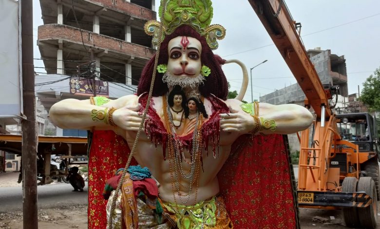 मानस मंदिर पूजा समिति की तरफ से करीब 12 फीट ऊंचे भगवान रामभक्त हनुमान विशाल प्रतिमा जुलूस में शामिल होगा। जिसका वजन करीब सात कुंतल बताया जा रहा है। जिसे सोमवार को क्रेन की मदद से ले जाने की जुगत की गई। जबकि यूनाईटेड क्लब की तरफ से महाबली हनुमान के पंचमुखी रुप की आकर्षक प्रतिमा निकलेगी। जुलूस में हाथी घोड़ा और झंडा पताका के साथ डीजे के धुन पर लाठी डंडा का करतब दिखाने वाले अनेक खिलाड़ी अपना शौर्य प्रदर्शन करेंगे। जुलूस को शांतिपूर्वक सकुशल संपन्न कराने के लिए उभांव इंस्पेक्टर अविनाश कुमार सिंह के साथ कई थानों की पुलिस और पीएसी तैनात रहेगी।