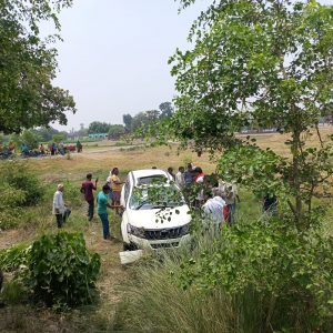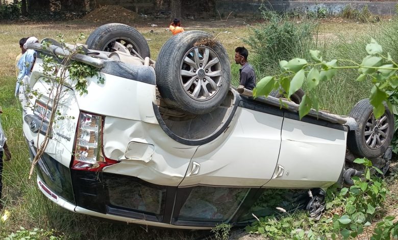 बेल्थरारोड के नपं चेयरमैन की गाड़ी मऊ में पलटी, बड़ा हादसा टला