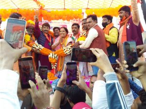 बेल्थरारोड के नगरा में नहीं पहुंचे में मनोज तिवारी, लटके भाजपा नेताओं के चेहरे