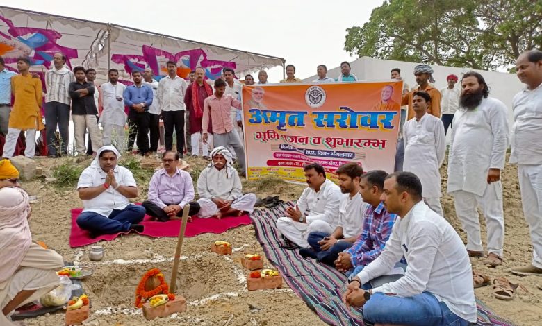 अमृत सरोवरः पोखरा सुंदरीकरण के लिए मनरेगा कमिश्नर और चेयरमैन ने चलाया फावड़ा