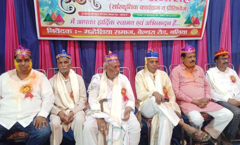 मद्धेशिया समाज के होली मिलन समारोह में रंगारंग कार्यक्रमों की धूम रही। रंग, गुलाल और फूलों की बारिश के बीच गायक बलराम और अनेक गायिका ने होली के कई पारंपरिक गीत गाएं। नगरपंचायत चेयरमैन दिनेश गुप्ता के देखरेख में हुए होली मिलन समारोह के मंच पर बेल्थराबाजार के आशुतोष गुप्ता ने भी अपनी कविता पढ़ी और बिना किसी वाद्य के मुंह से ही कई तरह के म्यूजिकल इंस्ट्रूमेंट की आवाज निकालकर सभी को ताली बजाने पर विवश कर दिया।