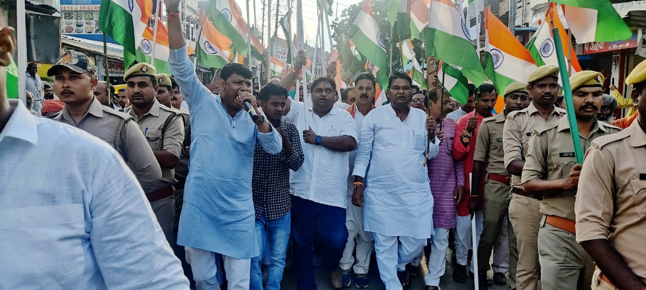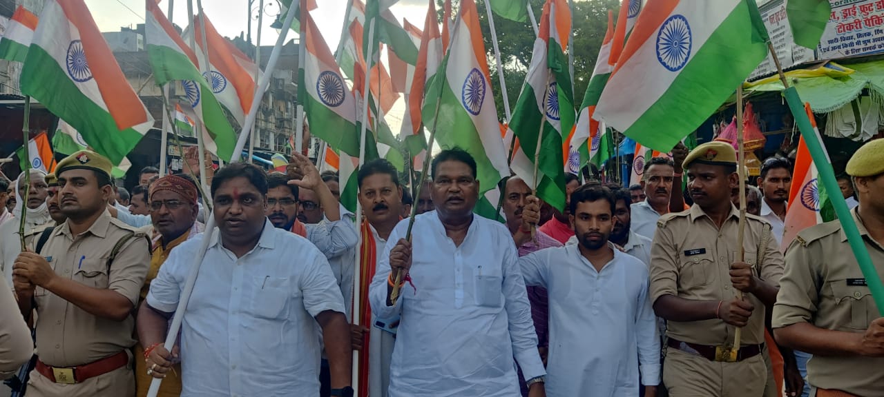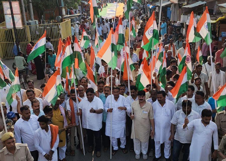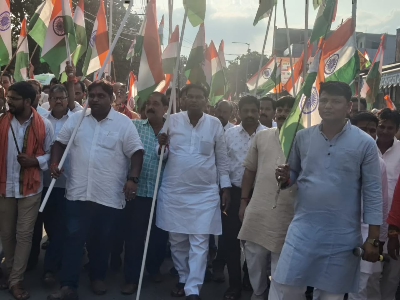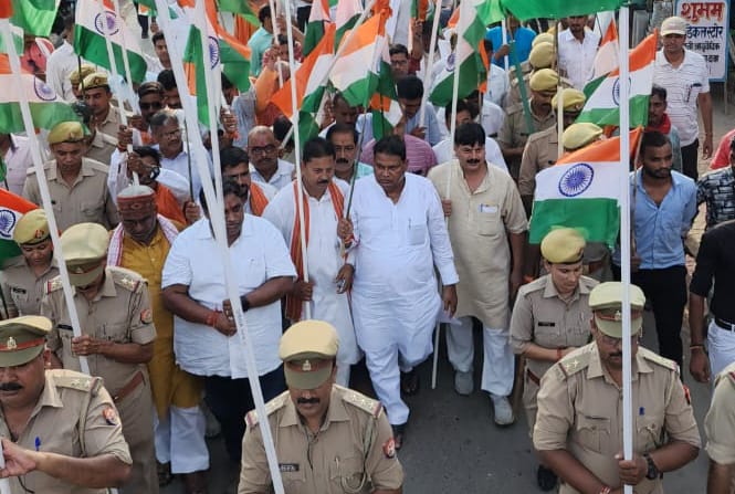 तिरंगा यात्रा में भाजपा नेता, पुलिस और नगरवासी हुए शामिल