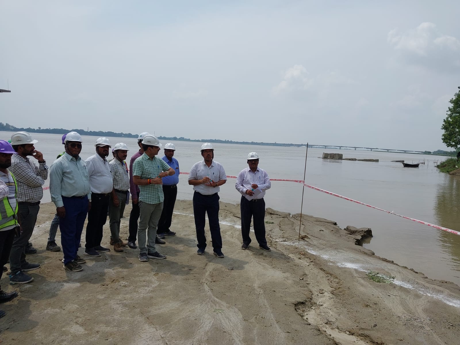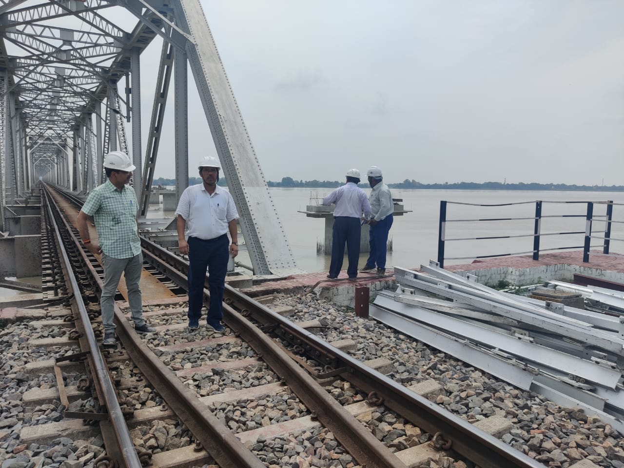 नए रेल पुल निर्माण के निरीक्षण के लिए पहुंचे रेल पुल चीफ इंजीनियर और आरवीएनएल अधिकारी