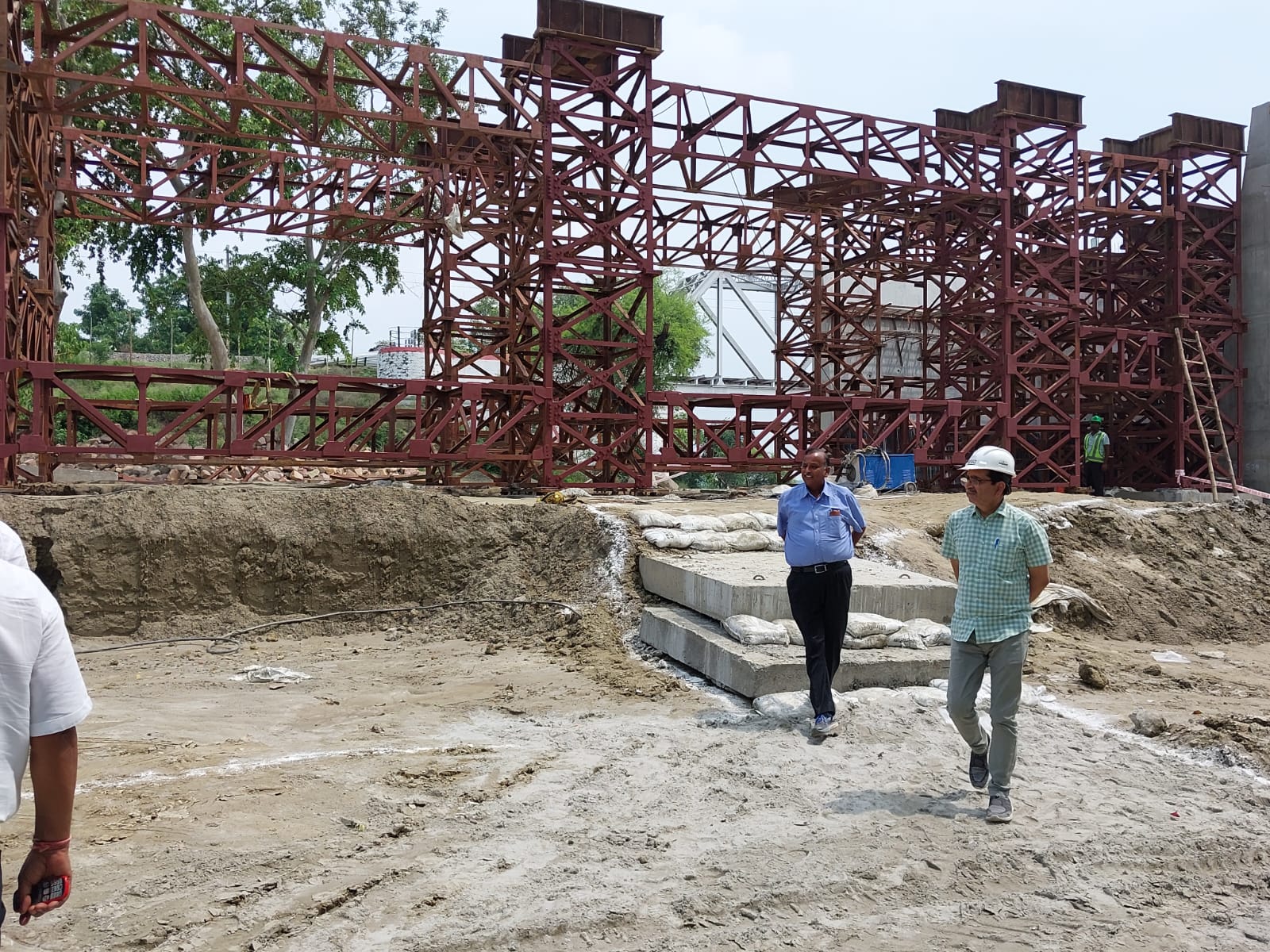 निरीक्षण के दौरान जारी निर्माण कार्य के गुणवत्ता पर अधिकारियों ने संतोष जताया। अधिकारियों ने बताया कि पुल का 75 फिसदी कार्य पूर्ण हो चुका है। रेल पुल के 19 पाया बनकर तैयार हो गए है लेकिन बारिश और बाढ़ के कारण नदी के अंदर का कार्य ठप है। लेकिन पुल का अब लांचिंग कार्य तेजी से जारी है। पुल के सब स्ट्रक्चर के 14 पाएं पूरी तरह से तैयार है और अब पुल के ऊपर लोहे के गाटर का फ्रेम तैयार किया जा रहा है। 8 लोहे का गाटर तैयार हो गया है। नर्माणाधीन पुल के पाए पर लोहे के गाटर लगाएं जा रहे है। इस रेल पुल को दिसंबर 2023 तक बनकर तैयार होने की उम्मीद जताई जा रही है। इस दौरान अधिकारियों ने पुराने रेल पुल की भी स्थिति को देखा।