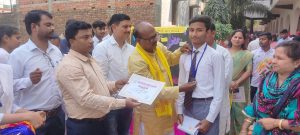 बलियाः जनपद बलिया के बेल्थरारोड एनसीपीए स्कूल पर सोमवार को विधायक हंसू राम ने वार्षिक परीक्षा में अव्वल छात्रों को मेडल और प्रशस्ति पत्र देकर सम्मानित किया और उनका हौसला बढ़ाया। न्यू सेन्ट्रल पब्लिक अकादमी स्कूल में आज छात्रों का वार्षिक परीक्षाफल घोषित किया गया। सम्मानित होने वालो में कक्षा नर्सरी से नौवीं और 11 वीं तक कक्षाओं के प्रथम द्वितीय और तृतीय स्थान प्राप्त छात्र शामिल है। प्रबंधक सतीश दुबे और प्रिंसिपल मिसेज पूनम ने सफल सभी छात्रों को बधाई देते हुए कहा कि परीक्षा परिणाम से किसी को निराश होने की जरूरत नहीं है। सभी छात्र पूरे जोश के साथ और बेहतर तैयारी करें। इस दौरान सपा के शिक्षक नेता आनंद यादव, अमरजीत चैधरी, वरिष्ठ शिक्षक आनंद श्रीवास्तव, रूमिता शर्मा, विशाल गुप्ता, सुजीत गुप्ता, राजीव गुप्ता, सुप्रिया जयसवाल, प्रगति, मो. जिशान, सुष्मिता, जूही शर्मा समेत अनेक लोग मौजूद रहे।